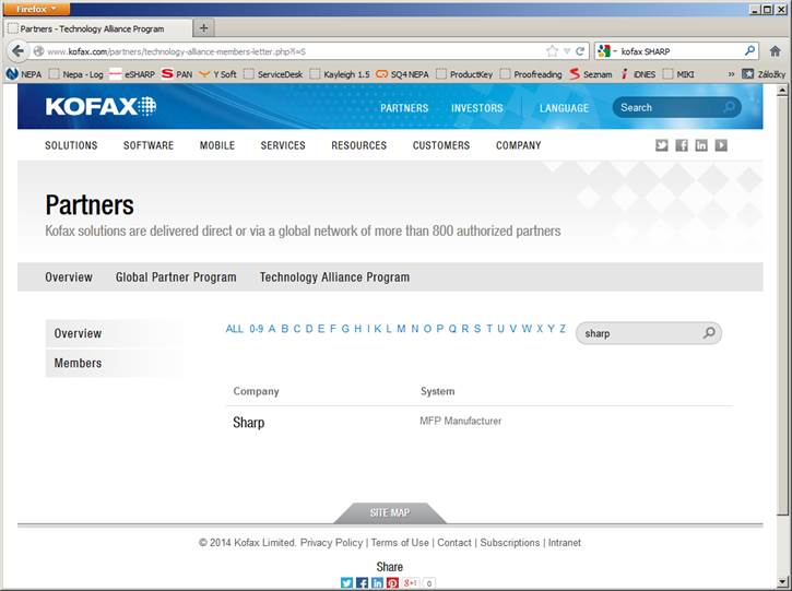 3. Níže přeposílám odkaz na Kofax, kde je SHARP uveden jak partner (viz. obrázek v příloze). Bude postačovat tento dokument pro Výběrové řízení?